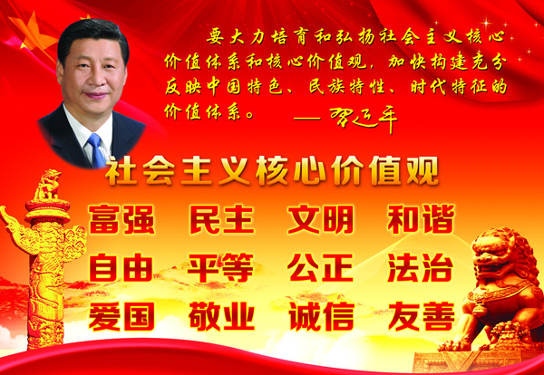 作為世界上最重要的社會(huì)主義國(guó)家,我國(guó)社會(huì)的核心價(jià)值體系就是社會(huì)主義核心價(jià)值體系,它體現(xiàn)在社會(huì)成員的具體行為中,體現(xiàn)在現(xiàn)實(shí)生活里,和我們每個(gè)人都息息相關(guān)。它概括起來(lái)主要包括四個(gè)方面的基本內(nèi)容,即馬克思主義指導(dǎo)思想、中國(guó)特色社會(huì)主義共同理想、以愛(ài)國(guó)主義為核心的民族精神和以改革創(chuàng)新為核心的時(shí)代精神、社會(huì)主義榮辱觀。社會(huì)主義核心價(jià)值體系蘊(yùn)涵的“富強(qiáng)、民主、文明、和諧”的價(jià)值理念,是同中國(guó)特色社會(huì)主義實(shí)踐緊密聯(lián)系的,具有鮮明的實(shí)踐指向。也可以說(shuō),“富強(qiáng)、民主、文明、和諧”是社會(huì)主義核心價(jià)值體系的現(xiàn)實(shí)價(jià)值目標(biāo)。