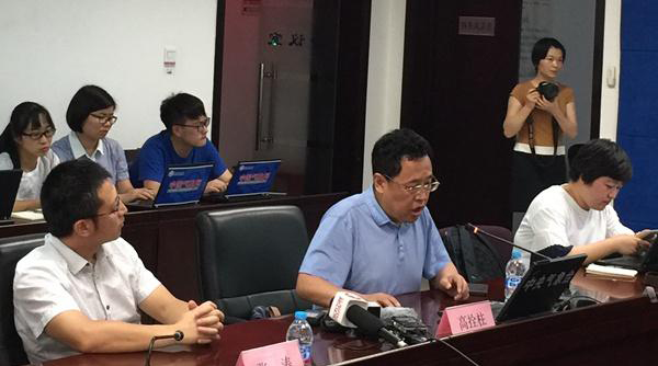 7日下午,臺(tái)風(fēng)專(zhuān)家高栓柱介紹“尼伯特”特點(diǎn)。