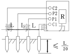 用此法測得的土壤電阻率可近似認(rèn)為是被埋入探針之間區(qū)域內(nèi)的平均土壤電阻率。