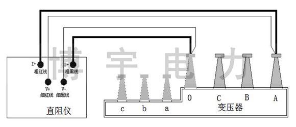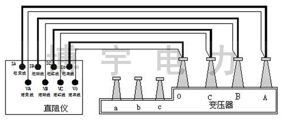 2.三通道直接測量接線,見圖三。可直接同時測量AO、BO、CO三相的阻值見圖三。
