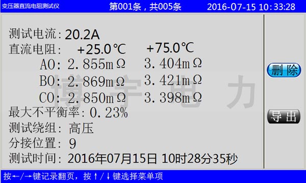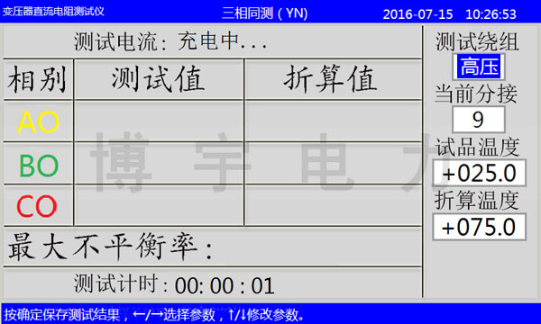 2、三通道測量,實時采集,同時測量三個電阻值,并計算三相電阻不平衡度。
