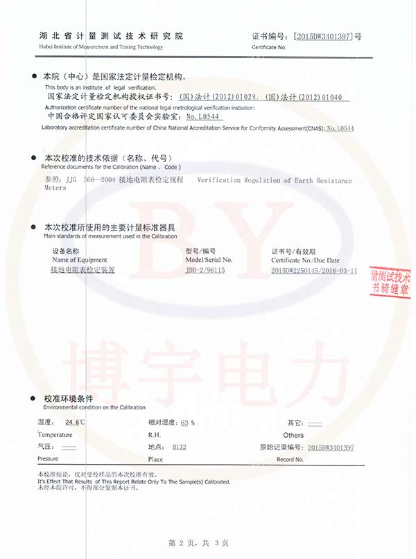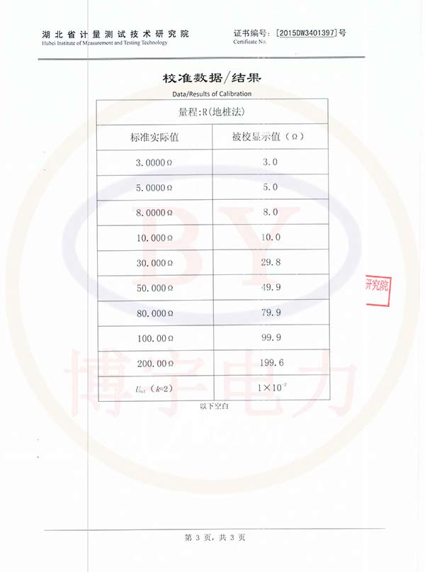 BY5600雙鉗口多功能接地電阻測試儀校準證書