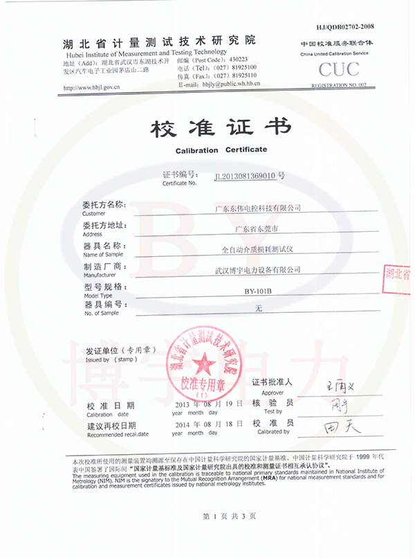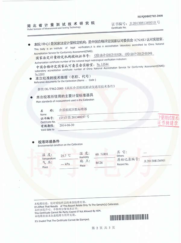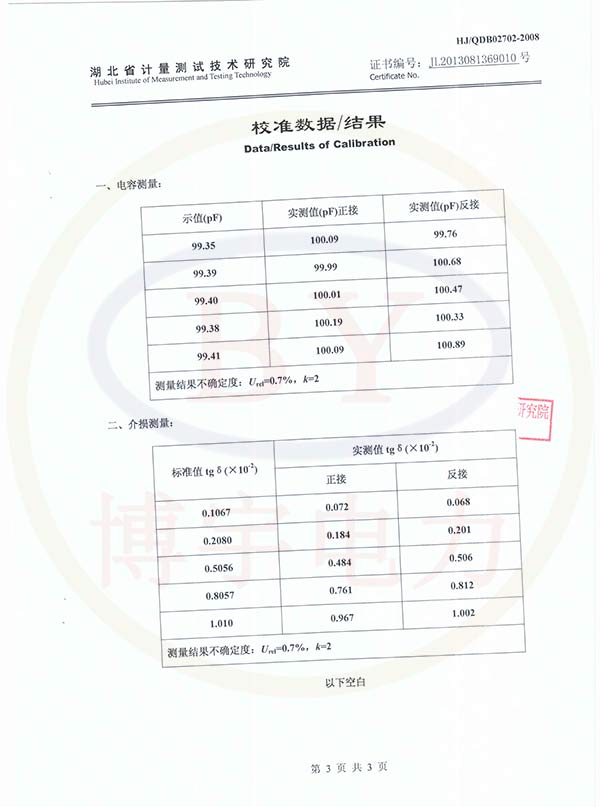 BY-101B全自動介質損耗測試儀校準證書
