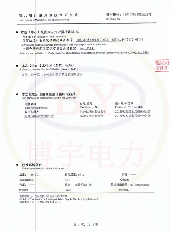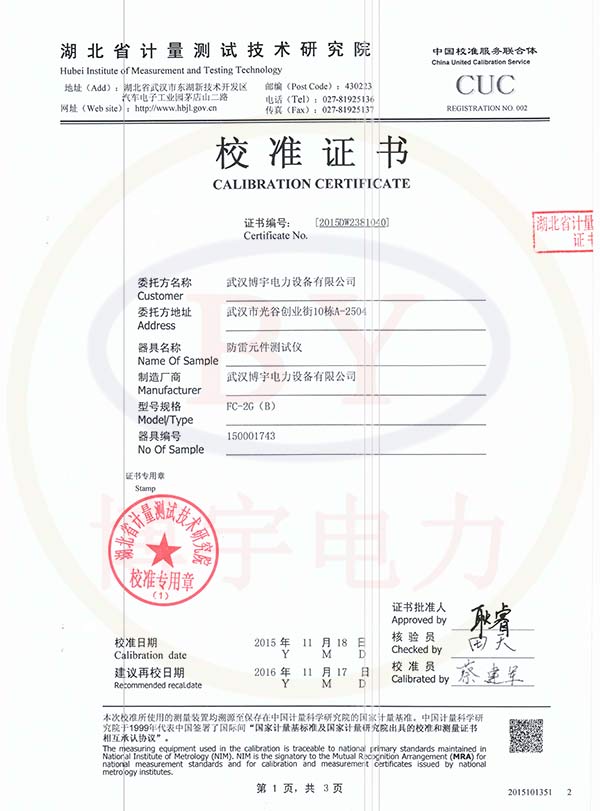 FC-2G(B)防雷元件測(cè)試儀校準(zhǔn)證書(shū)