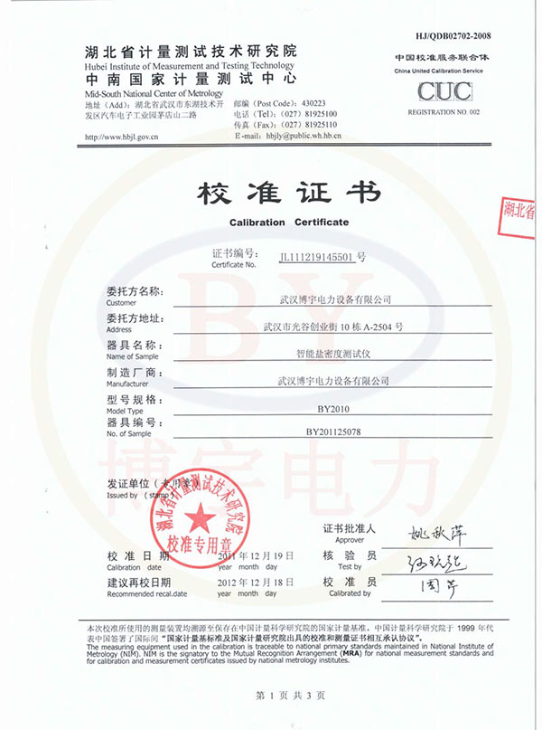BY2010智能鹽密度測試儀校準 …