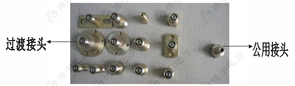 1.到現場后斷開與密度繼電器相連的電源,以免損壞校驗儀,同時拆下與密度繼電器相連管頭,接上相應的測量接頭(與共用接頭連接號,共用接頭尾端有活插頭方便測量管連接),測量接頭及共用接頭示意圖: